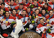 Hockey at the Olympic Winter Games: A tribute to the tradition of hockey at the Olympic Winter Games, covering men's and women's competitions. In-depth stats on Olympic teams and players since the 1920 competition in Antwerp. Click here for more. RIGHT: Canadian players celebrate their 2010 Olympic victory. Click to enlarge.