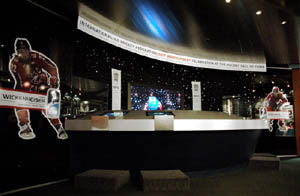 At the heart of the Tissot World of Hockey Zone is the Global Game Encounter, an innovative, interactive, high-tech exhibit providing in-depth information about international hockey. The exhibit combines individual user kiosks accessing detailed international hockey data and photographic images, with an impressive large-format multimedia display that caters its audio/visual presentations to those areas in which users are collectively interested.