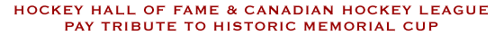 "The Memorial Cup has such a rich tradition that has helped shape the way Junior hockey is played in North America," said David Branch, President, Canadian Hockey League. "We are happy that Canadians from coast to coast will be able to visit the Hockey Hall of Fame and view this storied trophy, the new exhibit and view the tribute film, Memorial Cup Magic."