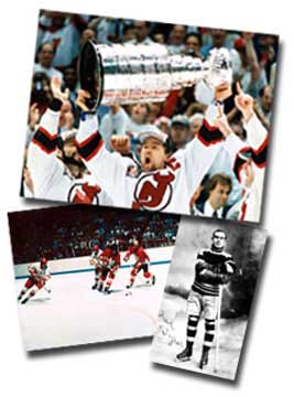 Various catalogued images of amateur to the professional leagues, players, coaches, trophies, and arenas.
