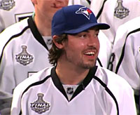 Star defender Drew Doughty sported a cap from his favourite baseball team, the Toronto Blue Jays, on Jimmy Kimmel Live. |