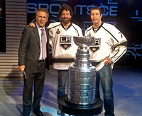 Justin Williams and Rob Scuderi on the set of ESPN SportsCentre with anchor Neil Everett. |