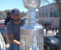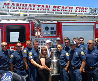 Not to be outdone, later in the day, Kings' captain Dustin Brown brought the Cup a few miles north to Manhattan Beach where he met with members of the fire department and city officials. |