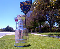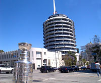The Cup poses for a photo in front of Hollywood landmark, the Capital Records Building. |