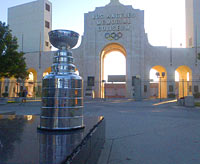 The Stanley Cup poses for a photo in front Los Angeles Memorial Coliseum, the only stadium to have hosted the Olympic Games on two occasions (1932 and 1984). |