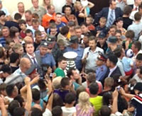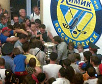 In Cheylabinsk, Russia, thousands of fans gathered to celebrate with Voynov and get a close-up view of The Stanley Cup. |