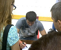 Voynov signed autographs for fans at a local arena. |