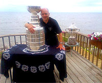 Kings Head Athletic Trainer Darren Granger and The Stanley Cup overlooking the lovely Lake Manitoba.