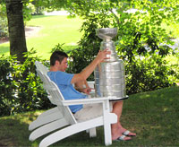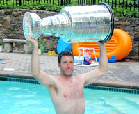 Rob Scuderi and The Stanley Cup cool off in the pool.