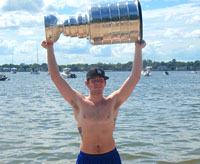 By sheer coincidence, on Jonathan's day with the Cup, his personal version of the Conn Smythe Trophy arrived via UPS. |