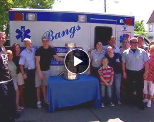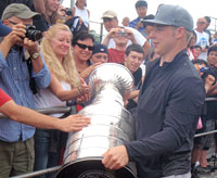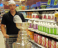 "Just picking up a few things!" Brown takes the Cup to a local grocery store in preparation for the evening's festivities. |