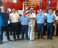 Matt Greene and The Stanley Cup pose with members of the Grand Ledge emergency services. |