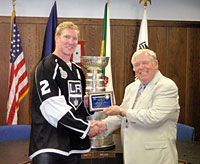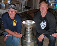 Matt Greene and his father pose for a photo alongside hockey’s oldest trophy. |