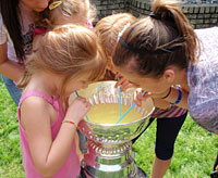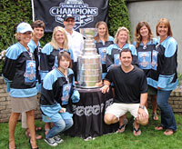The Stanley Cupcakes dropped by the Ranford backyard for a photo with the Cup. |