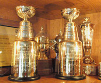 No stranger to Stanley Cup titles, Ranford's trophy case already housed two replica Stanley Cups from his playing days with the Edmonton Oilers. |