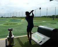 The Stanley Cup serves as a swing coach for Alec Martinez at a local driving range. |