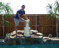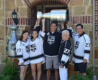 Alec Martinez and his family raise The Stanley Cup in front of his home in Allen, Texas. |