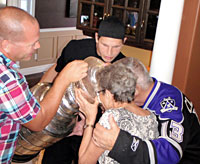 Kyle Clifford pours his grandmother a drink from hockey's most famous trophy. |