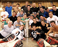 Brad Richardson and his friends played a ball hockey game in his hometown of Belleville, Ontario, with The Stanley Cup on the line. |
