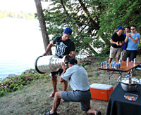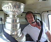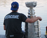 Brad and The Stanley Cup relax with a quiet moment on the lake. |