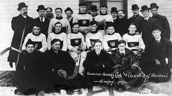 | The Stanley Cup Champion 1907 Montreal Wanderers. Lester Patrick (center of 2nd row) served as team captain. (HHOF) |