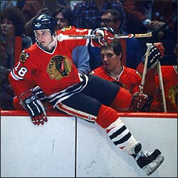 First Al Secord and then Rick Vaive banged and crashed, giving Savard room to bounce and wheel on his skates, dancing forwards, backwards and dipsy-doodling through the offensive zone. Savard helped turned the Chicago franchise around. In 1985-86, he scored a career-best 47 goals, include an NHL record when he scored 4 seconds from the start of the third period in a January 12 contest against Hartford. In 1987-88, he earned his highest career point total 131.