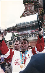 That summer, Fetisov and teammates Slava Kozlov and Igor Larionov took the Stanley Cup home to Moscow, the first time hockey's legendary trophy had ventured into Russia.
