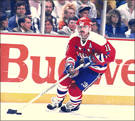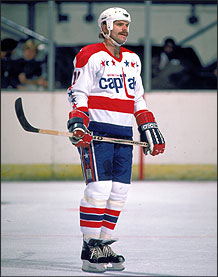 Over the next eight seasons, Gartner never scored fewer than 35 goals. He led the Capitals in scoring four times, and prior to his trade to Minnesota in 1989, he had set or tied twelve team records, including career goals (397) and points (789), all of which he accomplished on a team that missed the playoffs three times and bowed out in the first round three other times. "It was a franchise that hadn't won a lot in the early years, but they had started to build a pretty good nucleus of players," Mike says. "When I went there, hockey was in no way the number one sport. In fact, it wasn't number two, three or four either! Yet, it was a great experience for me. I was given all sorts of opportunities to play, and because I was, I turned into a guy who could put the puck in the net."