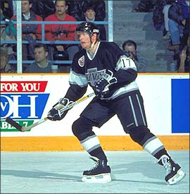 Jari's next move went right off the board. After wiping the champagne from his lips, he accepted a position with Milano of the Italian league for the 1990-91 season, but by '91-92, Kurri had returned to the NHL through a deal that sent the winger from Edmonton to Los Angeles by way of Philadelphia. Reunited with Wayne Gretzky, Jari enjoyed his four-and-a-half years with in Los Angeles. "With L.A., we went to the finals against Montreal," remembers Kurri, reflecting on the playoffs during the spring of 1993. "We lost, but we were so close to winning a Stanley Cup in L.A. When Wayne went to L.A., hockey was very exciting in California. I was very happy to be part of that."
