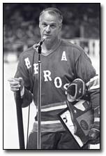 (May 27, 2002) -- Gordie Howe entered the NHL in 1946 and, by the time he made official his retirement on September 7, 1971, had transcended hockey from a Canadian to a North American sport. He had played and dominated the NHL for exactly a quarter century, but arthritis in his wrists became too painful to continue. The executive job the Red Wings were offering him was far more appropriate for a 43-year-old than trying to struggle through another year of playing. Besides, he had a family to raise, and two of his boys, Marty and Mark, were enjoying excellent junior careers with the Toronto Marlies of the OHL.