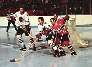 Moving to Chicago for Game 3, the Hawks again edged Montreal, this time by a count of 2-1 that was finally decided on Murray Balfour's goal at 12:12 of a third overtime. Pilote assisted on the critical marker.