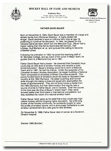 This portrait of Father David Bauer by Glen Green was handed out during the 1989 Hockey Hall of Fame Induction weekend. |