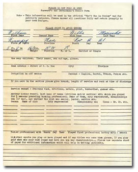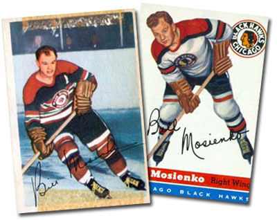 In order to compile a 'Who's Who section in the National Hockey League's Guide and Record Book, players were asked to provide information on various topics, including their minor hockey career, accomplishments in other sports, ancestry, military service, and off-season employment. Here is one for Bill Mosienko filled in by Jim Hendy.