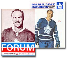 The imposing Red Kelly often graced the covers of numerous game programs. Here he appears on the front of an October 26, 1966 Maple Leafs edition and a March 1, 1967 Montreal Canadiens edition.