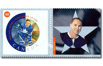 A Red Kelly 48 cent Canadian stamp marking the anniversary of the NHL all-star game