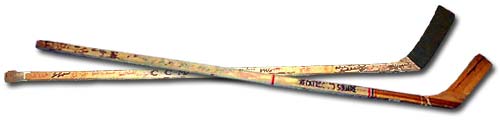 Autographed sticks of the 1963-64 and 1965-66 Toronto Maple Leafs.