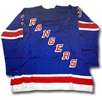 (Left) New York Ranger jersey worn by Howell during the early 1960s (Right) Cleveland Barons jersey designed by General Manager Harry Howell for the 1978-79 NHL season, however, following the 1977-78 season and playing in front of sparse crowds, the franchise merged with the Minnesota North Stars. |