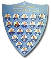 1962-63 Salada Foods collectible coins on a Maple Leaf shield.