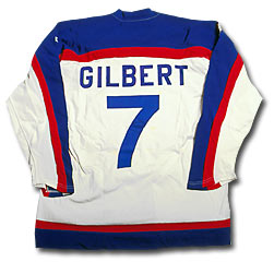 A program from the Sunday, December 5th, 1965 game between the New York Rangers and the Chicago Black Hawks at Madison Square Garden. Gilbert is pictured on the bottom left. |
