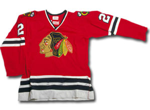 The jersey of long-time Blackhawk Stan Mikita (circa 1970s).