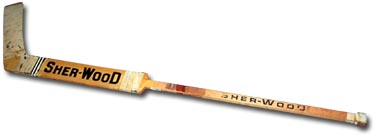 Goalie stick used by Bernie Parent of the Philadelphia Flyers during his last NHL game in 1978-79.