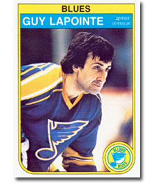 Two Guy Lapointe stickers. The left is from the 1970-71 Esso Power Players collection, while the other is from the 1972-73 Eddie Sargent sticker series. |