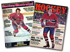 Throughout his career, Larry Robinson graced the cover of numerous magazines such as Hockey Illustrated (March, 1977) and Hockey Pictorial (October, 1977).