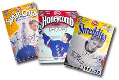 An assortment of cereal box covers