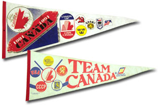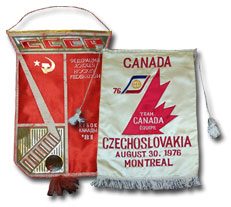 Mini-banner given to opposing players participating in the 1981 Canada Cup by members of Team Soviet Union. Mini-banner given to opposing players participating in the 1976 Canada Cup by members of Team Canada.