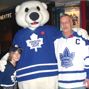 Leafs Mascot Carlton the Bear interacts with Leaf fans during Lay's Fan Day at the Hall.
