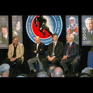 The Q&A Fan Forum featured the Hall's newest Inductees - Dick Duff and Patrick Roy in the Player Category and Harley Hotchkiss in the Builder Category. Jim Craig also participated, representing the late Herb Brooks.