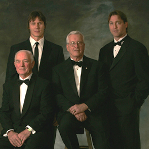 Introducing the Hockey Hall of Fame's Class of 2006 - (Left to right) Dick Duff, Dan Brooks (representing his father, the late Herb Brooks), Harley Hotchkiss and Patrick Roy. (13-Nov-2006-Silvia Pecota/HHOF)