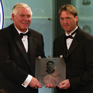 Patrick Roy, the winningest goalie of all-time and new Inductee, recalls dreaming about becoming an NHL goalie after his first visit to an arena when was eight years old. (13-Nov-2006-Dave Sandford/HHOF)