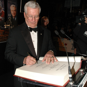 Harley Hotchkiss proudly signs the Honoured Member book in a ceremony that took place in the NHLPA Be A Player Zone. (13-Nov-2006-Scott Veber/HHOF)